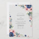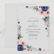 A sophisticated watercolor design showcasing deep navy blue and soft blush pink roses. Verdant greenery and delicate berries accent the floral clusters, lending a romantic and timeless atmosphere. The palette of navy, pink, and ivory creates a polished aesthetic suitable for a formal spring or summer event.