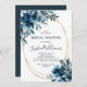 Navy Blue Flowers & Gold Frame Bridal Shower Invitation