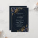Navy Blue Flowers Gold Leaves Frame Wedding Invitation