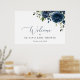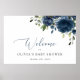 Navy Blue Flowers, Greenery, Baby Shower Welcome Poster