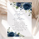 Invite friends and family in style and set the tone for your special day with this charming birthday invitation. Design features navy blue watercolor flowers and greenery on white background.