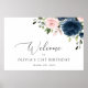 Navy Blue Flowers, Pink Flowers, Birthday Welcome Poster