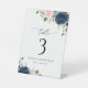 Navy Blue Flowers, Pink Flowers, Table Numbers Pedestal Sign