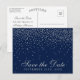 Navy Blue & Glam Silver Confetti Save The Date Announcement Postcard