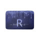 A chic navy blue background decorated with faux glitter drips, paint dripping look.The blue colour is uneven. Personalise and add your family name and monogram letter. The name is written with a modern hand lettered style script with swashes. To keep the swashes only delete the sample name, leave the spaces or emoji's in front and after the name. Light blue and white letters.