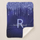 Navy blue glitter drips monogram name sherpa blanket