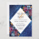 This modern and elegant wedding engagement party invitation is perfect for the classy and luxury event. It features hand-painted fall and autumn; navy blue, burgundy red, mustard yellow, and teal green watercolor flowers and leaves on top of a dark navy blue triangle corner alongside faux printed sparkly navy blue glitter corners. It's artsy, glamourous, unique, trendy, and beautiful; the perfect design for your special day. Stylise your invites with this hand-painted piece done by the artist of La Femme, Rachel Matheney.