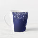 A navy blue background. The blue colour is uneven. Decorted with faux glitter drops. Personalise and add a name and monogram initials. The name is written with a modern hand lettered style script.