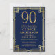 Navy Blue Gold 90th Birthday Photo Surprise Party Invitation