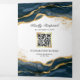 Navy Blue Gold Abstract Ink QR Code Wedding Tri-Fold Invitation