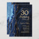 Navy blue and gold agate 30th birthday party invitation. Elegant modern design featuring royal blue watercolor agate marble geode background, faux glitter gold and typography script font. Trendy invite card perfect for a stylish women's bday celebration. Printed Zazzle invitations or instant download digital printable template.