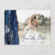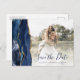 Navy Blue Gold Agate Custom Photo Save the Date Postcard