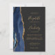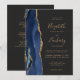Navy Blue Gold Agate Dark QR Code Wedding Invitation