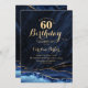 Navy Blue Gold Agate Marble 60th Birthday Invitation