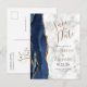 Navy Blue Gold Agate Marble Save the Date Announcement Postcard