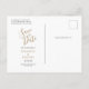 This elegant modern save the date postcard features a navy blue watercolor agate border trimmed with faux gold glitter. The gold coloured and black customisable text appears on a grey and white marble background. The reverse side repeats the information, along with a customisable return address.