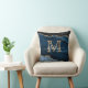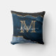 Navy Blue Gold Agate Monogram Name Script Initial Throw Pillow