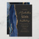 Navy Blue Gold Agate Slate Script 50th Birthday Invitation