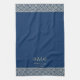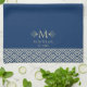 "navy blue gold fan diamond", "art deco custom monogram", "personalised customised kitchen towel", "personal name art nouveau", "elegant stylish classy dishcloth", "add your own text", "geometric family name surname", "vintage classic initialled initial", "japanese retro 1920s 1930s", "classy diamonds pattern letter"