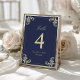 Elegant navy blue and gold baroque wedding table number card, perfect for guiding guests to their seats at your reception. Designed with ornate gold flourishes and customisable details, this table number is ideal for formal, luxury, and classic weddings. Coordinates with the full navy blue and gold baroque wedding invitation suite for a cohesive look.