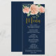 Navy Blue Gold Blush Floral Wedding Dinner Menu