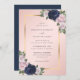 Navy Blue Gold Blush Pink Floral Wedding Invitation