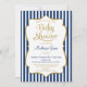 Navy Blue Gold Boy Baby Shower Invitation Stripes