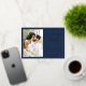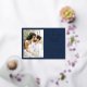 This elegant navy blue calendar monogram script save the date card is excellent for a relaxed wedding. The basic gold design is adorned with a lovely romance typeface in a modern glam style.