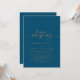This navy blue gold classic elopement reception card is perfect for a modern post elopement party. The simple and elegant design features chic and fancy script typography in burnt gold.