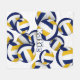This fun volleyball themed fleece blanket can be personalised with the athlete's name atop the image of a bunch of varied size navy blue, gold and white volleyballs - the volleyballs are selectively shaded for a unique 3D appearance - by katz_d_zynes