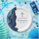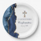 Modern navy blue and gold agate decorate this elegant confirmation paper plate for your Christian ceremony celebration. Customise with a name under the cross for beautiful religious party decorations for a Methodist or Catholic church reception.