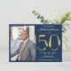 Navy Blue Gold Custom Photo Classy 50th Birthday Invitation