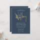 A modern invitation featuring light faux gold foil with elegant white fonts on a navy blue background. You can add your details in the customize menu. This invitation is part of a beautiful matching wedding suite that can be fully personalized.