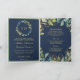 Navy Blue Gold Eucalyptus Wreath QR Code Wedding Invitation