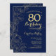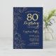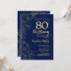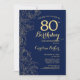 Navy Blue Gold Floral 80th Birthday Party Invitation