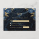 Navy Blue Gold Floral Agate Script Wedding RSVP Enclosure Card