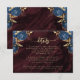 Navy Blue Gold Floral Burgundy Wedding Details Enclosure Card