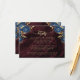 This elegant wedding details enclosure card features blue floral bouquets set off with gold faux foil foliage in two corners, on a background image of burgundy watercolor agate. The customizable text combines gold-colored serif, italic and handwriting fonts. The reverse side features a matching floral and agate design.