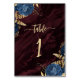 Navy Blue Gold Floral Burgundy Wedding Table Number