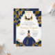 Navy Blue & Gold Floral Elegant Quinceañera Invitation