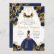 Navy Blue & Gold Floral Elegant Quinceanera Birthday Invitation