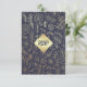 Navy Blue Gold Floral Pattern Wedding RSVP Card