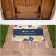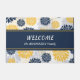 This pretty personalised door mat features a navy blue and gold flower pattern as the top and bottom border. At the centre is a matching navy blue banner that is lined with gold lines. At the centre is your text in white. Bold and beautiful! Be sure to see the matching products in our store. Graphic floral design credit to Malachi Designs on Etsy.