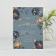 Navy Blue Gold Flowers Wedding Invitation