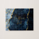 Navy Blue & Gold Foil Watercolor Marble Agate Gilded Geode Design, with Modern and Script fonts. Trendy and Chic Custom Text Puzzle! ~ Check my shop to see the entire wedding suite for this design!