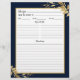 Here's the perfect double-sided recipe page designed to coordinate with its matching binder, Personalised Gold Navy Blue Monogram Family Recipe binder. The design, both front and back, features a lovely pair of faux gold foil botanical leaf foliage at the top right and the bottom left on a navy blue background together with room for all the information you need for your recipes. If you have a design question or would like to see this design on another product, please feel free to contact me at jschmidtdesignworks@gmail.com. Design © Judith Schmidt.