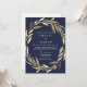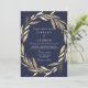 Navy Blue Gold Garden Leaf Wreath Wedding Invite