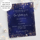 A navy blue background decorated with faux gold glitter, sparkles. The blue colour is uneven. Personalise and your names and details.