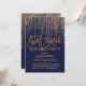 Navy Blue Gold Glitter Fringe Curtain Sweet 16 Invitation