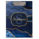 Navy Blue & Gold Glitter Marble Agate Monogram Clipboard